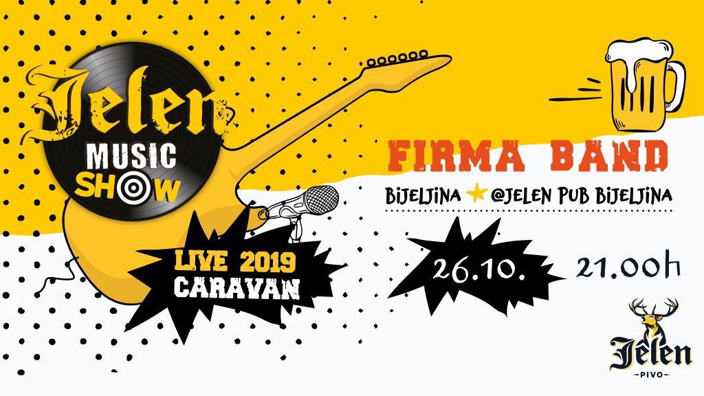 Predstojećeg vikenda nas očekuje nastavak „Jelen Music Show Live“, muzičkog karavana! Ove subote 26. oktobra nas očekuje nastup benda „Firma“ u Jelen pubu Bijeljina, uz rashlađeno Jelen pivo. Od 21 sat nas očekuje nastup prepun pozitivnih vibracija, uz najbolju muziku. Članovi benda obećavaju rasplesanu noć u kojoj nećete sjediti ni trenutka!