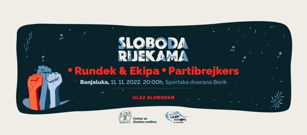 Koncert “Sloboda rijekama” za očuvanje rijeka Balkana na kojem će nastupiti Partibrejkers i Darko Rundek & Ekipa u organizaciji Centra za životnu sredinu, a koji je odgođen u septembru zbog lošeg vremena, održaće se 11. novembra u Sportskoj dvorani Borik u Banjaluci sa početkom od 20.00 časova. Koncert se organizuje u okviru regionalne kampanje Sačuvajmo plavo srce Evrope koju su pokrenule evropske organizacije EuroNatur i Riverwatch, u saradnji sa lokalnim partnerima na Balkanu, a u BiH je koordiniše Centar za životnu sredinu.